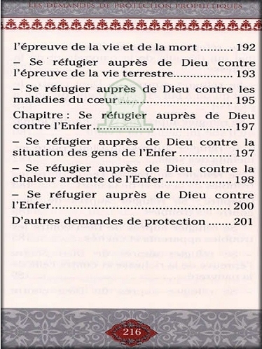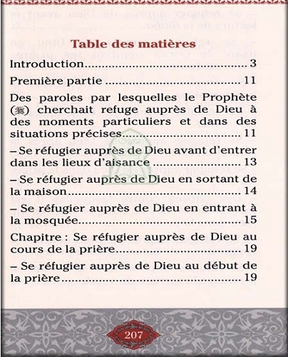 Le propos de ce livre consiste à mettre à la disposition du lecteur les demandes de protection formulées par l'Envoyé de Dieu (saw) à différentes occasions ou qu'il a recommandées à ses Compagnons de prononcer pour se préserver des créatures ou des choses néfastes.