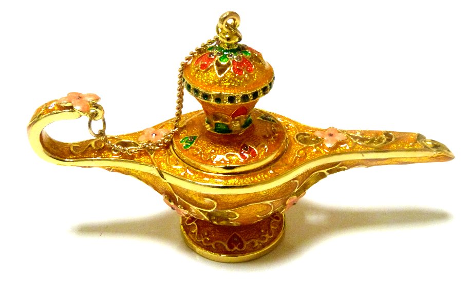 Cette très jolie lampe d'Aladdin dorée est non seulement un atout décoration important mais c'est aussi un objet qui peut être utilisé pour stocker des perles, des boucles d'oreilles, des colliers, des pendentifs et toutes ces petites choses qui créent le désordre si elles ne sont pas rangées.