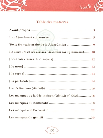 Grammaire Elémentaire de l'Arabe, Al-Ajurrûmiya Livre