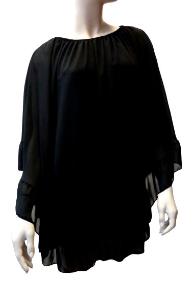 Top, genre cape, avec matière crêpe fluide, col carmen.