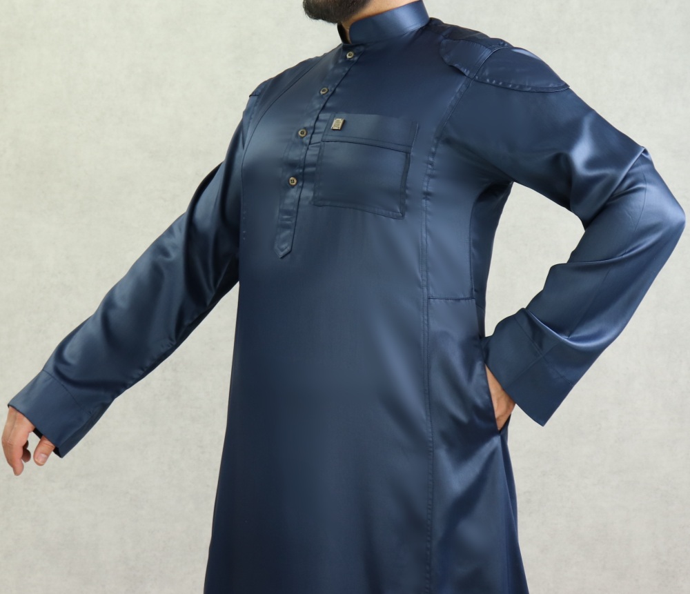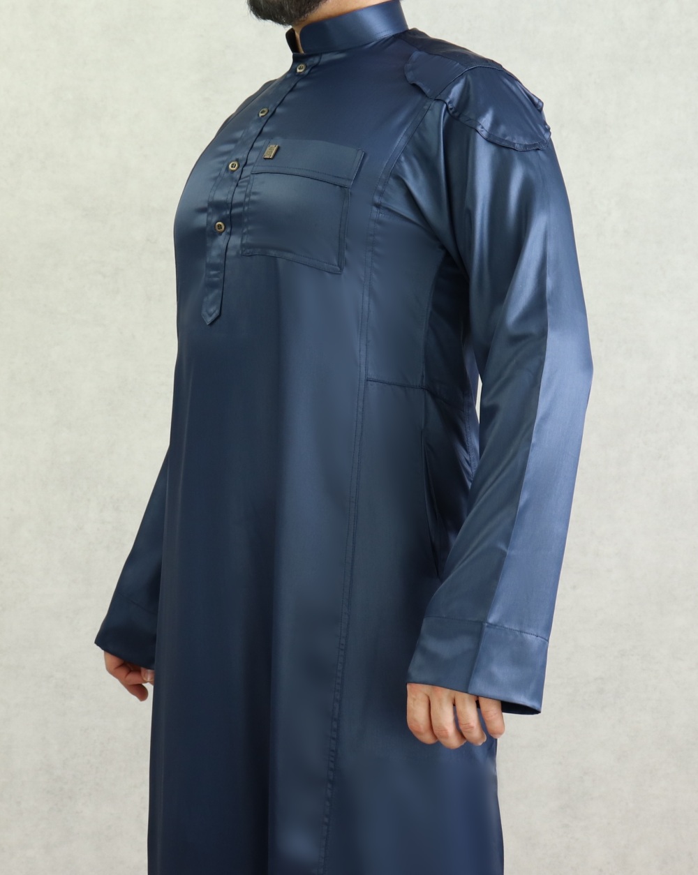 Qamis homme moderne haut de gamme de couleur bleu nuit (tissu satine)