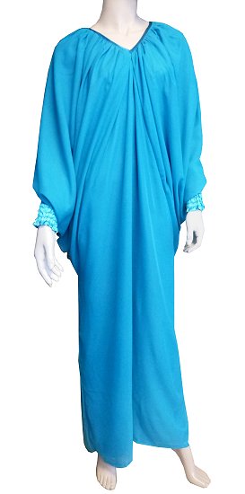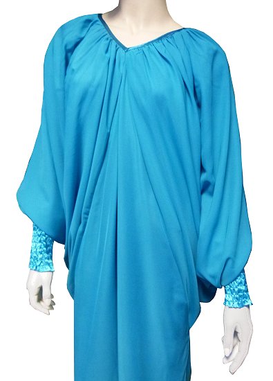 Robe confortable et habillée . Col en V satiné, manches amples resserrées aux poignets par une bande élastique froncée et satinée. Tissu léger style "organza" accompagné d'une doublure. Coupe papillon en haut et droite au niveau des hanches.