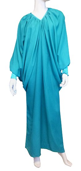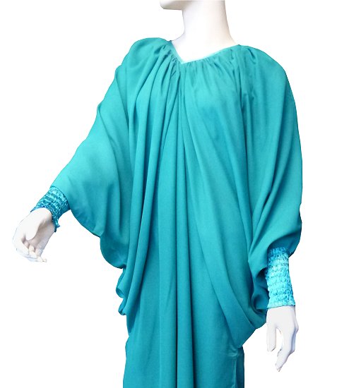 Robe confortable et habillée . Col en V satiné, manches amples resserrées aux poignets par une bande élastique froncée et satinée. Tissu léger style "organza" accompagné d'une doublure. Coupe papillon en haut et droite au niveau des hanches.
