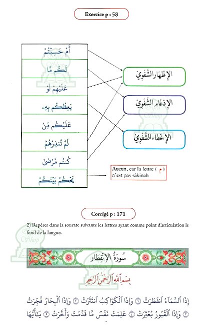 Cet ouvrage dédié aux exercices se veut complémentaire du livre : Le Tajwid simplifié reprend les thèmes dans le même ordre sur deux niveaux avec les corrigés correspondants afin de permettre à l'étudiant, à défaut d'être encadré par un professeur, de pouvoir assimiler plus rapidement les règles de tajwid. Il sera également une aide au professeur qui peut s'en servir comme modèle et proposer ainsi d'autres exercices à ses élèves.