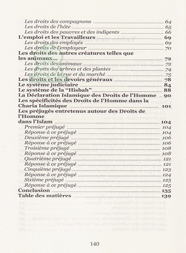 Après avoir souligné le souci de l’Islam de garantir les droits fondamentaux et exposé les droits généraux et particuliers, l’auteur a précisé les spécificités des droits de l’homme dans la législation islamique. Il apporte enfin des réponses détaillées aux préjugés entretenus à ce sujet.