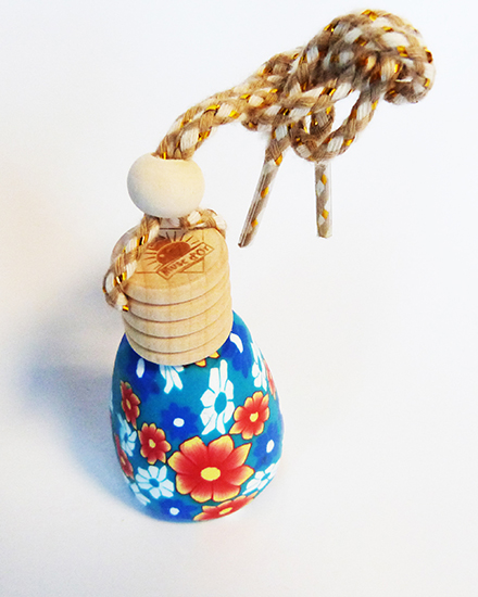 Joli flacon en verre avec bouchon bois pour diffuser le parfum de façon harmonieuse, à suspendre dans la voiture (au rétroviseur par exemple). Peut être utilisé également dans une armoire ou tout autre endroit à parfumer.