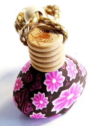 Joli flacon en verre avec bouchon bois pour diffuser le parfum de façon harmonieuse, à suspendre dans la voiture (au rétroviseur par exemple). Peut être utilisé également dans une armoire ou tout autre endroit à parfumer.