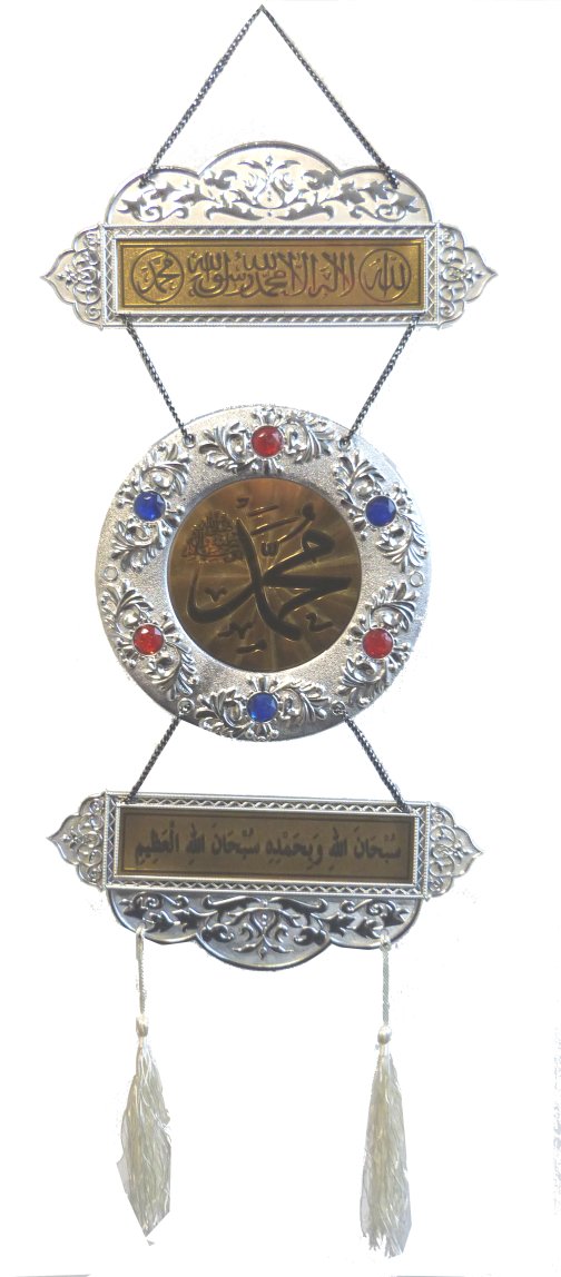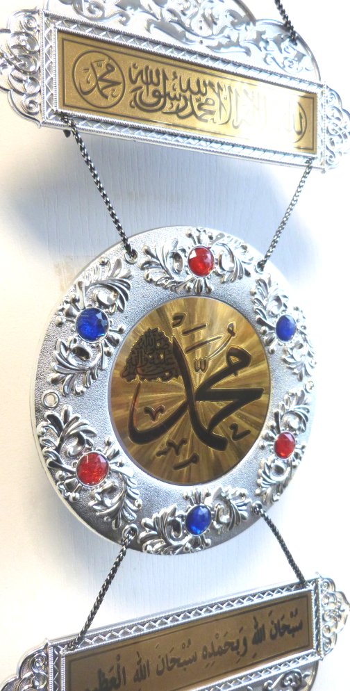 Décoration murale argentée et dorée inscriptions islamiques (Mohammed Saw) - REF. 21752 (8.50 €)