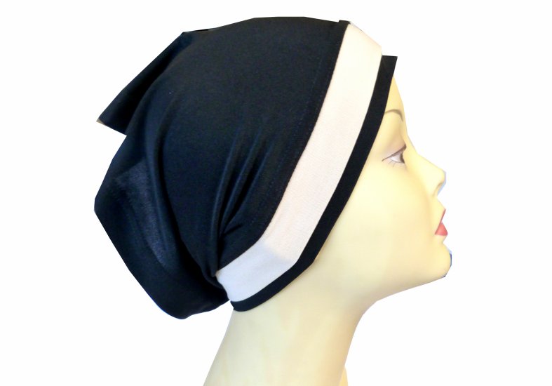 Bonnet extensible agrémenté d'une bande de tissu à l'avant pour habiller vos hijabs avec style et modestie 24 cm.