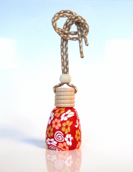 Joli flacon en verre avec bouchon bois pour diffuser le parfum de façon harmonieuse, à suspendre dans la voiture (au rétroviseur par exemple). Peut être utilisé également dans une armoire ou tout autre endroit à parfumer.