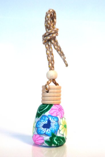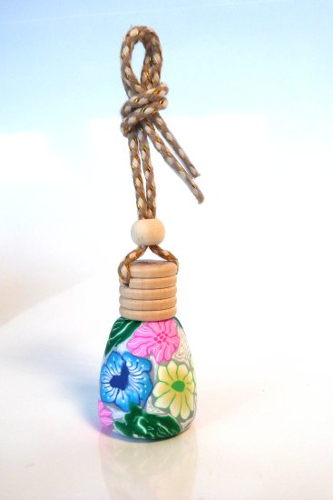 Joli flacon rose en verre avec bouchon bois pour diffuser le parfum de façon harmonieuse, à suspendre dans la voiture (au rétroviseur par exemple). Peut être utilisé également dans une armoire ou tout autre endroit à parfumer.