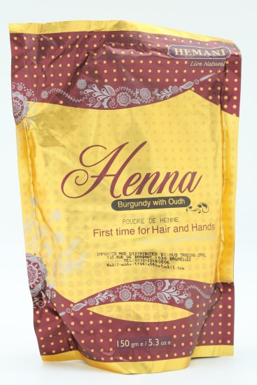 Henné en poudre Acajou parfumé au Oud (150g) - Burgundy Henna with Outh - REF. 22130 (3.50 €)