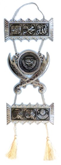 Décoration islamique toute argentée avec les calligraphies sur trois parties :