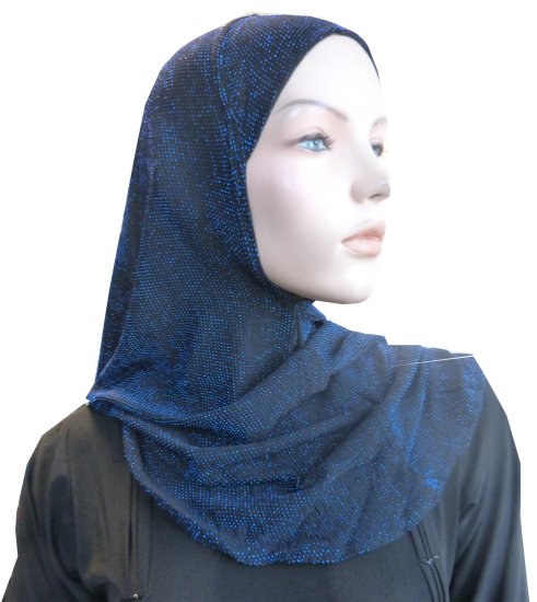 #TITRE-EN: Black hijab with bright blue glitter #DESCR-EN: Nice black hijab, with bright blue glitter
