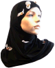 Hijab 1 pièce noir pailleté avec motifs fleurs blanches - REF. 22097 (6.90 €)