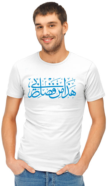 T-Shirt moderne personalisable avec le verset et le dicton "Ceci est un bienfait de mon Seigneur" (hadha min fadli rabbî هذا من فضل ربي).