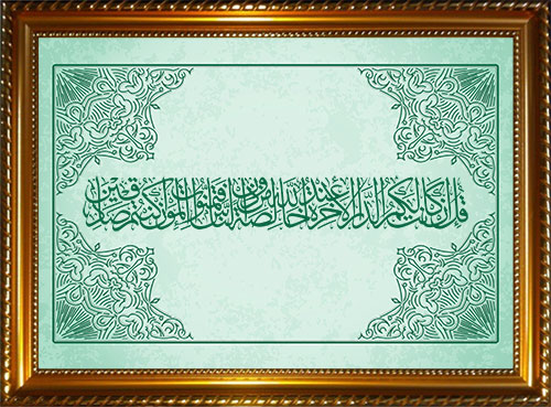 Vous recevrez un tableau avec encadrement bois décoré et doré contenant la calligraphie du verset ainsi qu'un texte optionnel de votre choix (personnalisable) en français ou en arabe. Ce texte sera placé en dessous de la calligraphie.
