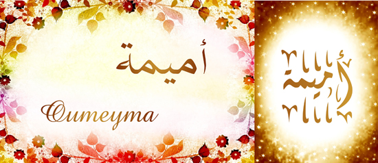 Signification (sens) du prénom ’Umayma (Oumeyma) أُمَيْمَة: Diminutif de ’umm (أُمّ), signifiant petite maman. ’Umayma, fut la tante du Prophète Muhammad.