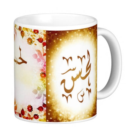 Voir l'ensemble des mugs dédiés au prénoms calligraphiés en arabe (Mugs prénoms arabes et musulmans féminins - Mugs prénoms français)