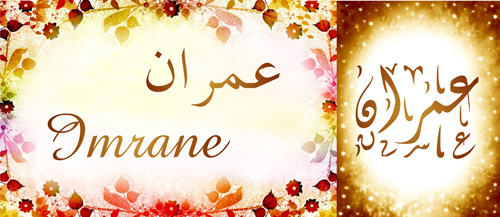 Signification (sens) du prénom ‘Imrân (Imran) عِمْرَان: Construction, peuplement. ‘Imrân, père des Prophètes Mûsâ (Moïse), Hârûn (Aaron) et de Maryam (Marie). ‘Imrân Ibn Husayn (m. 52 A.H), célèbre compagnon du Prophète Muhammad.