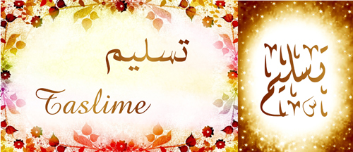 Signification (sens) du prénom Taslîme (Taslima) تَسْلِيمَ: Féminin de taslîm (تَسْلِيم), Taslima تَسْلِيمَة signifie conformité, résignation.