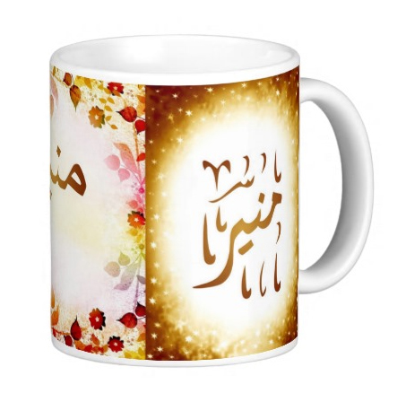 Voir l'ensemble des mugs dédiés au prénoms calligraphiés en arabe (Mugs prénoms arabes et musulmans féminins - Mugs prénoms français)