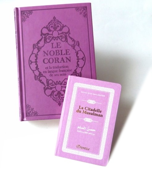 Pack cadeau mauve : Le Noble Coran (bilingue français/arabe) + La Citadelle du Musulman assortie Livre Coup de coeur