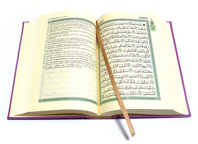 Le Noble Coran avec pages en couleur Arc-en-ciel (Rainbow) - Bilingue (français/arabe) - Couverture Violet doré - REF. 36043 (25.90 €)