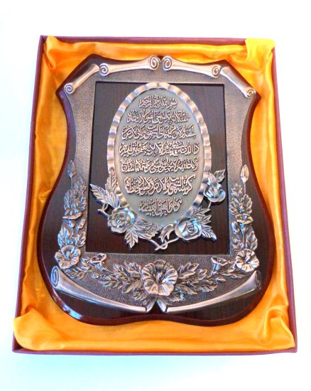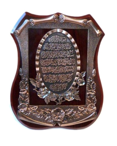 Tableau islamique en bois et décorations couleur bronze avec "Ayat Koursi" (Le Verset du Trône).