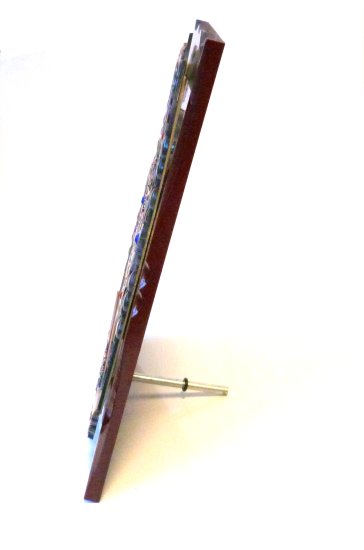 Tableau en bois avec calligraphie du Nom "Allah" (Seigneur de l'univers) avec de jolies décorations en couleur bronze.