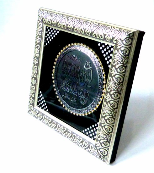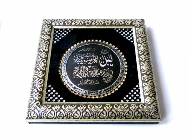 Très beau tableau en bois argenté décoré de diamants avec la calligraphie de Sourate Yassin.