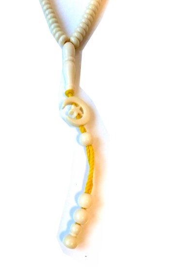Grande Sebha à 99 grains en plastique de couleur blanc cassé.
