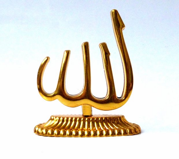 Objet décoratif en porcelaine dorée avec calligraphie Allah décoré de diamants - REF. 23463 (7.50 €)