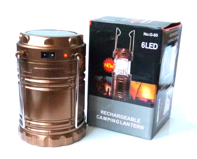 Lanterne solaire de camping ou de jardin de 6 LED rechargeable équipée d'une cellule photovoltaïque (marron) - REF. 23433 (12.90 €)