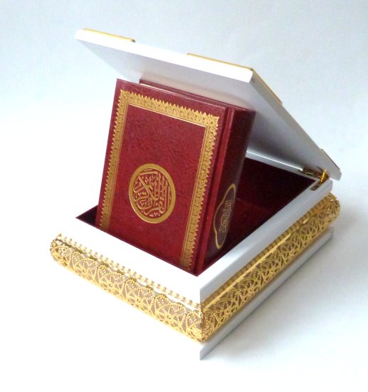 Grand Coffret de luxe blanc en bois pour Coran avec parties dorées fourni avec son Support doré - REF. 23482 (39.00 €)