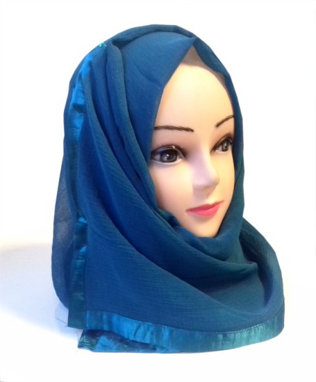 Chale/ Foulard Hijab avec bande brillante satinee autour