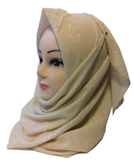 Hidjab beige avec motifs bandes dorés - 2 pièces - REF. 13181 (7.00 €)