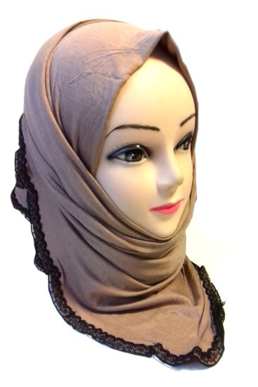 Hijab 2 pièces marron foncé avec bonnet dentelle marron - REF. 22216 (6.90 €)