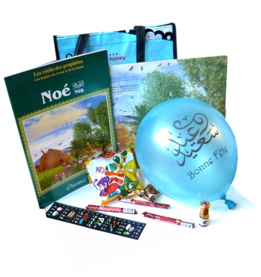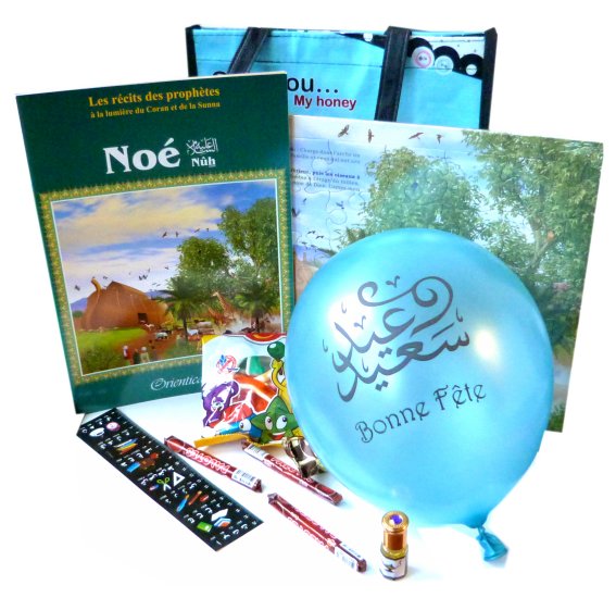 Pack Cadeau Enfant : Livre Les Histoires des Prophètes Racontées aux Enfants + Confiseries Bonbons Halal + Tapis de prière enfant + 10 ballons "Aïd Moubarak" - REF. 23172 (24.00 €)