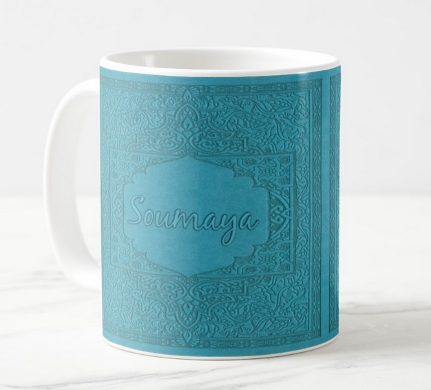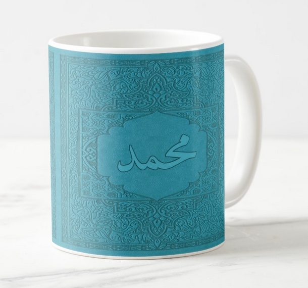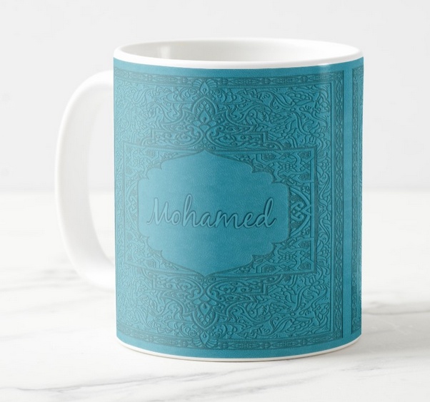 Mug avec prénom personnalisable en calligraphie arabe style "Naskh" (Tasse vert-bleu) - REF. 23823 (9.90 €) |