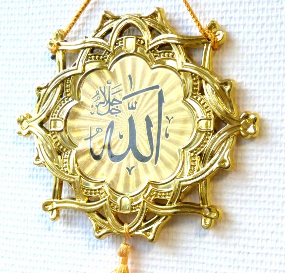 Pendentif islamique décoratif doré avec calligraphie "ALLAH".