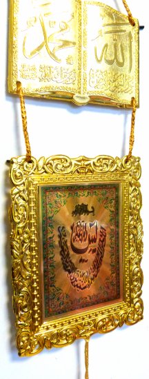 Garniture murale dorée avec Le nom d'ALLAH, le Nom de prophète Mohammed (Saw) et Sourate Al-Ikhlass - REF. 24001 (3.90 €) |
