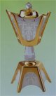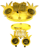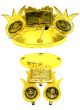 Très belle décoration murale originale entièrement dorée, constituée de trois parties rondes contenant des calligraphies artistiques du Nom d'Allah, de Bismillah ar-rahman arrahim et de Ayatoul-Koursi (Verset du Trône). Deux pompons sont suspendus de part et d'autre de l'objet pour une finition soignée.