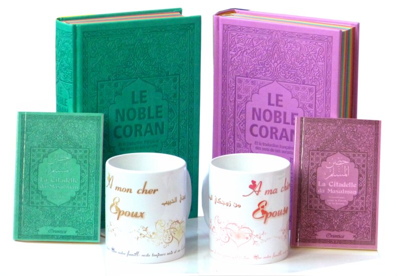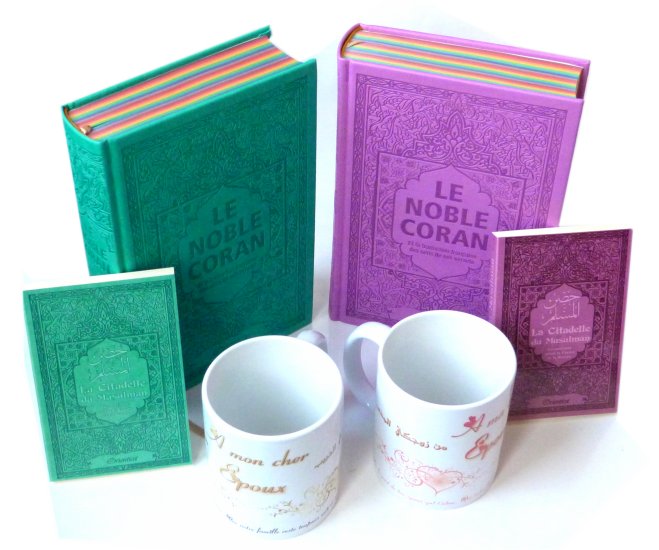 Pack Cadeau De Luxe pour Couple (Livre sur le mariage, 2 Corans, 2 Citadelles, 2 Mugs, 2 Tapis et 2 Parfums) - Cadeaux Musulmans Halal - REF. 24005 (75.00 €)