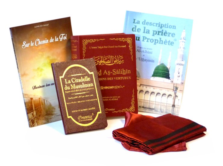Pack cadeaux Convertis : Riyâd As-Sâlihîn - Les Jardins des Vertueux, Sur le chemin de la foi, La description de la prière et Tapis de poche pliable
