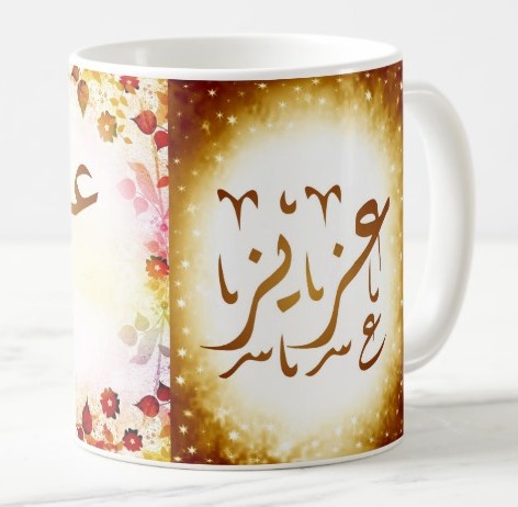 Voir l'ensemble des mugs dédiés au prénoms calligraphiés en arabe (Mugs prénoms arabes et musulmans féminins - Mugs prénoms français)