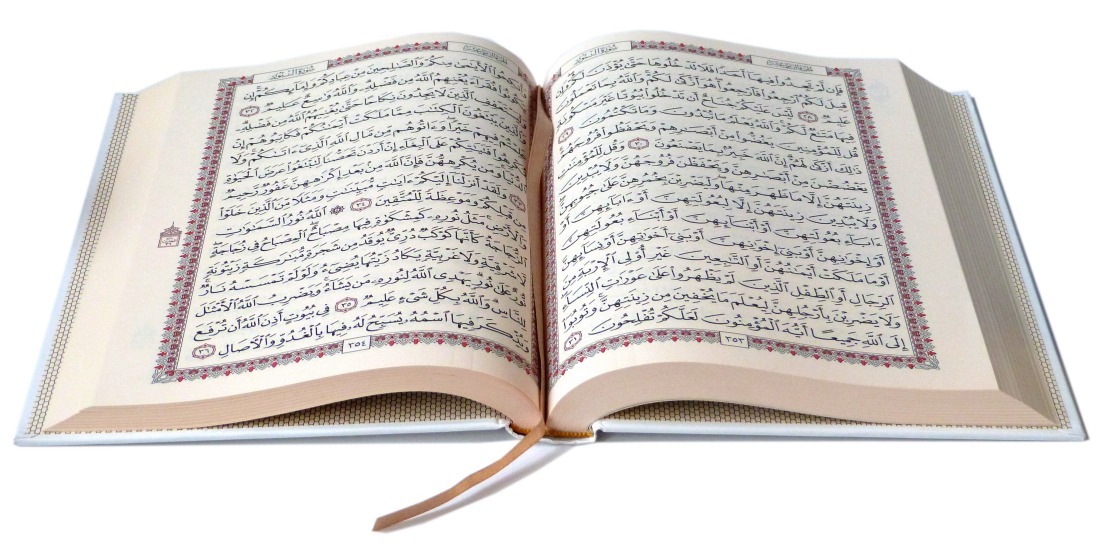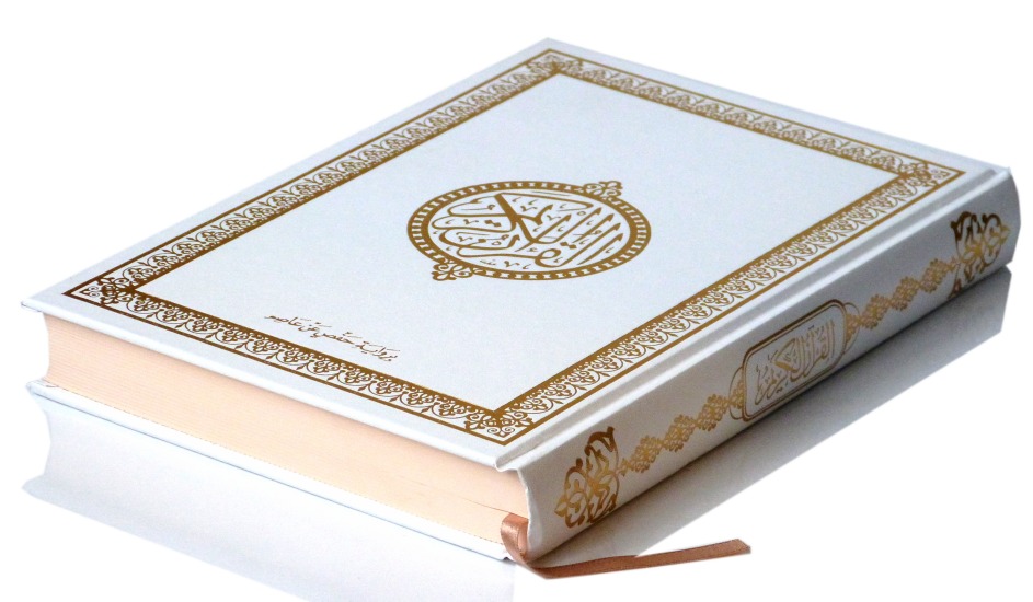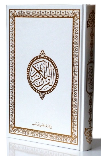 Coran de luxe avec couverture de couleur blanche avec dorures, agréable à manier et ne ramasse pas la poussière.