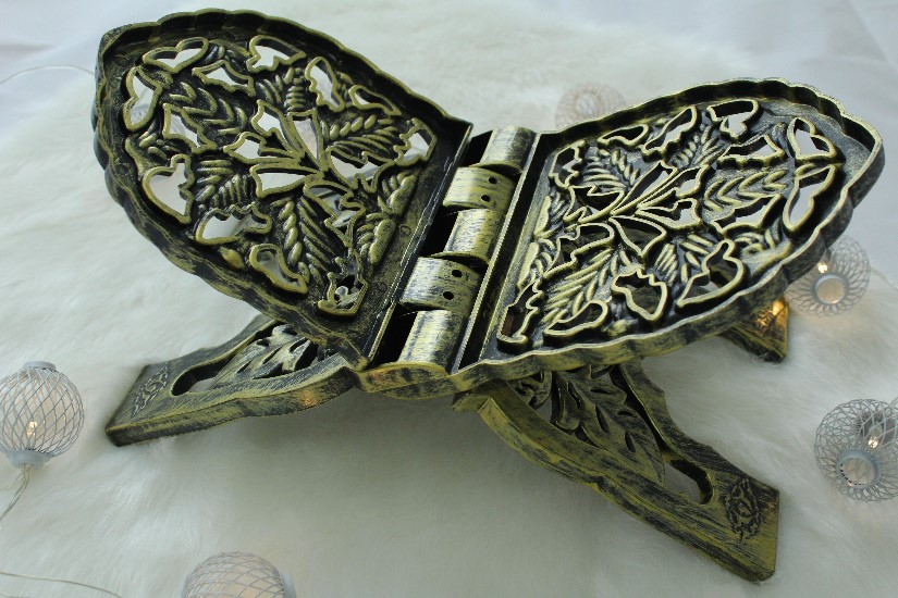Sculpté en bois, pratique pour y poser un livre lorsqu'on s'assoit par terre pour lire et méditer. Facile à ranger (se plie). Généralmeent utilisé dans les mosquées ou les maisons pour lire le Coran.