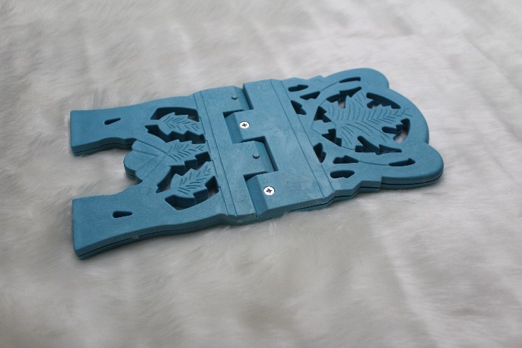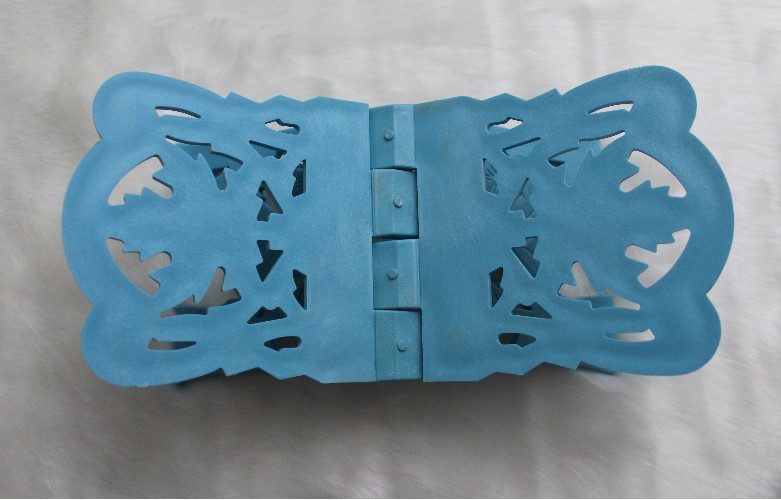 Porte livre léger et lavable en plastique rigide de couleur bleu, pliable, avec des motifs de feuilles.