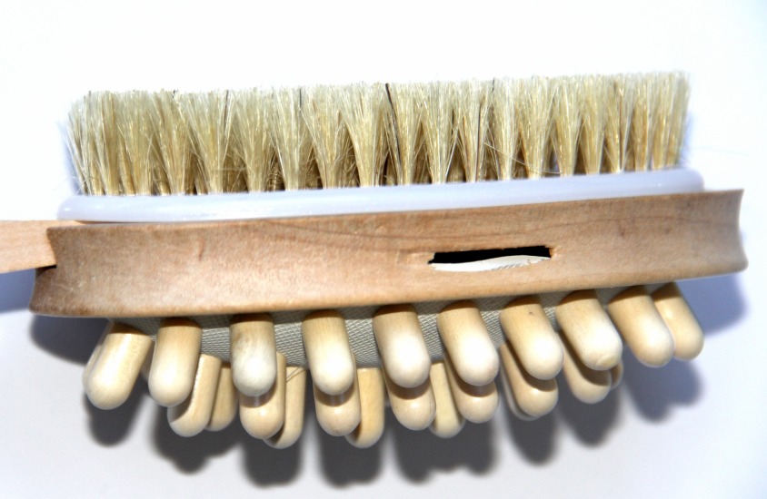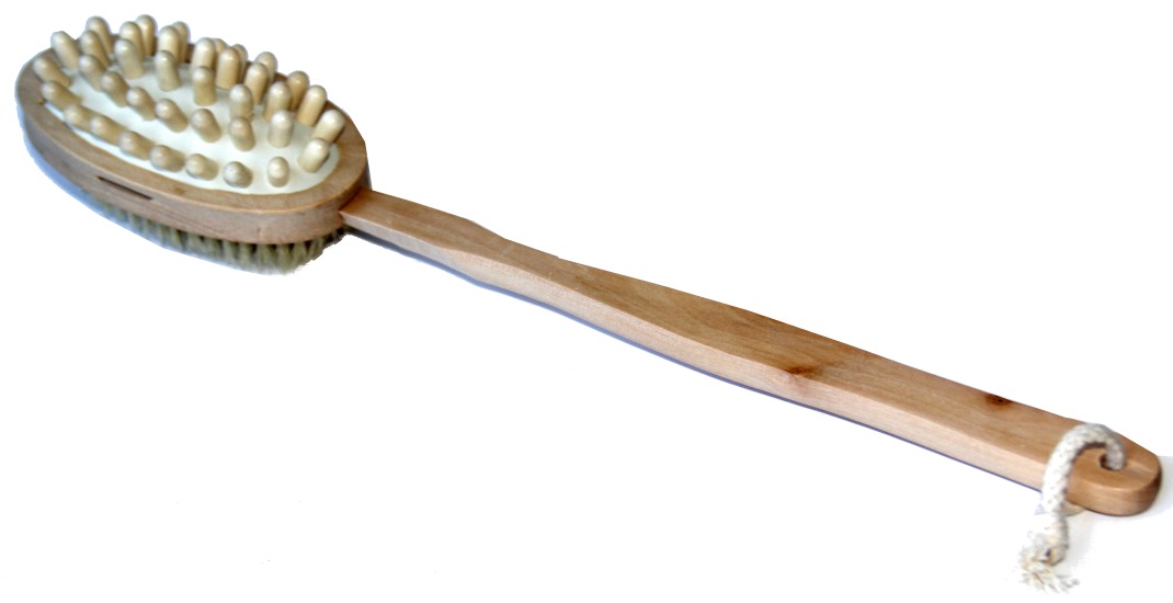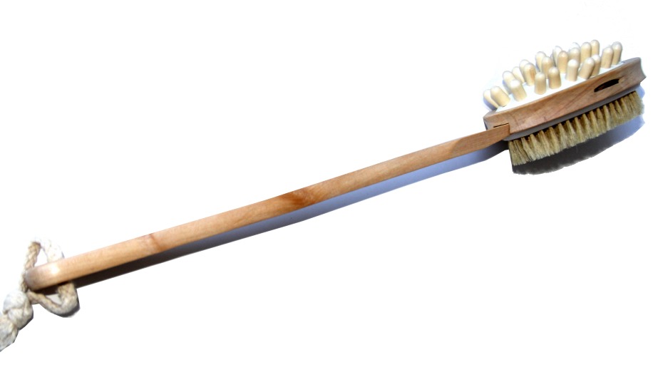 Brosse en bois double face avec cote exfoliant et cote massage (pour le dos et le corps)